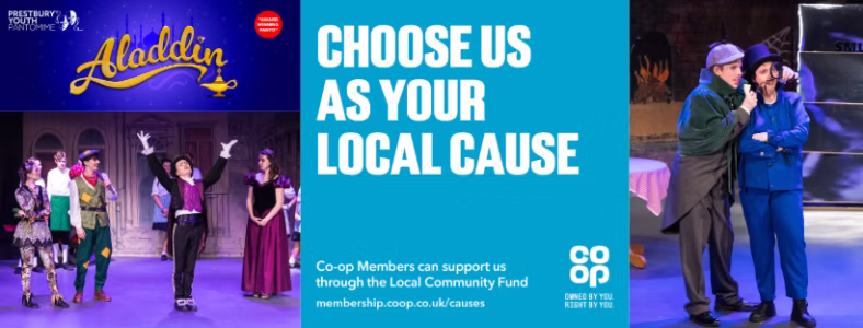 Please choose Prestbury Youth Pantomime Association as your Local Community Fund cause on the Co-op app for a chance to win £500 for you and £5,000 for us.